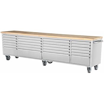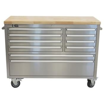 Stainless Steel Rolling Rubberwood Top Workbench This stainless steel 72-inch workbench has a 1.5" thick solid rubberwood top, (8) drawers, and cabinet for all your garage, basement, or kitchen storage needs. Get Organized and Create More Space ... View This Document