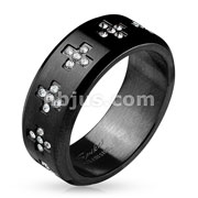 Pyramid Spikes Black Band Ring Stainless Steel (406)