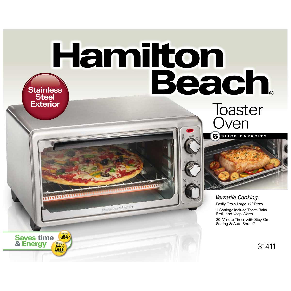 Hamilton Beach® Toaster Oven toast, bake, broil and warm without ever turning on your full-size oven with the stylish Hamilton Beach® Toaster Oven. Perfectly sized to fit a 12" pizza, but not too big to be a countertop mainstay, this toaster oven’s large capacity and four cooking settings gives you the flexibility to make just about anything. ... Content Retrieval