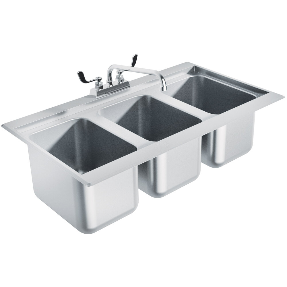 Shop Regency 10 inch x 14 inch x 10 inch 16-Gauge Stainless Steel Three Compartment Drop-In Sink with 10 inch Faucet. In stock at a low price and ready to ship same day from WebstaurantStore. ... Content Retrieval