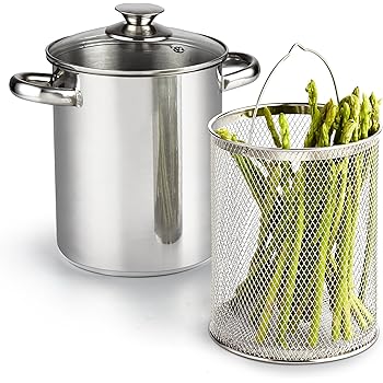 Steam asparagus and freshly cut veggies to perfection with All-Clad's 18/10 Stainless Steel Asparagus Pot! This 3.75 quart sauce pot has a tall and narrow construction with a steamer basket inset. ... Document Retrieval